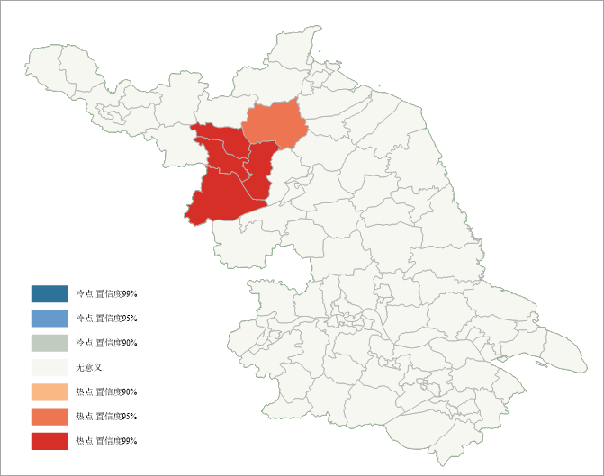 | Z > 0 and small value of P | Indicates a spatial cluster of high values. The higher the Z score, the greater the degree of clustering. | Hotspot, the corresponding Gi _ ConfInvl field is a positive number. |