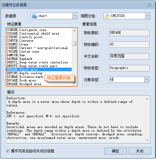 The object data dictionary provided by SuperMap conforms to the IHO S-57 standard and contains the name, code, type, definition and related remarks of the characteristic object, which can be easily used for Create Feature Dataset. These Datasets are widely used in feature identification, Data Update and map sheet generation in chart production to ensure the consistency and accuracy of data.