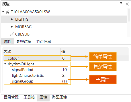 - Simple attribute: The attribute of the feature object cannot be subdivided and has no child attributes. The "colour" attribute in the following figure.