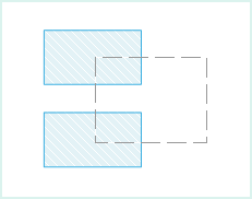 - If a new object is drawn through an existing face object, a complex face object is generated, that is, a face object with multiple subobjects. As shown in the following figure, the newly drawn face object (dotted rectangle) crosses another face object (Filling Rectangle), and the result is a complex object containing two sub-objects.