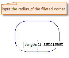 - Move the mouse, and you can see that the radian of the four corners of Rounded Rectangle changes accordingly. Enter the radius (length) of the rounded corner in the Parameter Input box, and press Enter to complete the drawing.