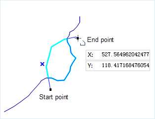- When the object to be updated is not selected, the starting point and ending point of the drawn polyline must be on the boundary of the object to be updated, so it is recommended to turn on the snap function during operation.