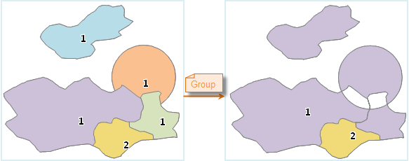 - Group : Objects with the same property field value are combined into one object, and the overlapping parts are deleted.