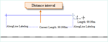 - Line cycle spacing: When the line object is too long, it can be labeled once at a certain distance. The text box on the right side of the label control is used to set the distance of repeated labeling. Note that the cycle length set here is the distance from the end of the previous label text to the beginning of the next label text. As shown in the figure below, a section of railway is marked, the word spacing along the line is 1 times, and the period spacing along the line is 100. Then the distance between the end of any label text and the beginning of the next label text is measured to be exactly one linear periodic interval with a length of 100. The units are consistent with the units of the map.
