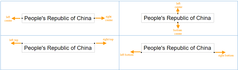 - Text Avoid of Two Directions: The label in the map can be adjusted in several directions around its annotation object. The alignment relationship of the object is shown in the following figure. For example, if the Alignment of the Thematic Label Map layer is set to the upper left corner, the No Overlap function will calculate whether capping will occur at the symmetry point (upper right corner) if capping occurs. That is, whether the upper right corner point of the Bounds of the label text will be covered when it is aligned with the trace point of the marked object. If it is not covered, the Alignment will be used as the result of avoidance.