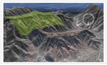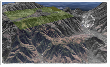 When ClampToGround mode is used, the altitude of 3D Data is completely ignored, and each 3D Object is attached to the terrain surface according to its latitude and longitude and the relief of the terrain surface, that is, the height relative to the terrain surface is zero. As shown in the following figure, when ClampToGround mode is used, the altitude information of the surface object is ignored, and the surface object will be attached to the undulating terrain surface according to the latitude and longitude coordinate information and the trend of terrain undulation.