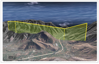Absolute mode (Absolute) is the altitude relative to sea level. This mode ignores the actual altitude of the terrain. This altitude mode is useful when the exact altitude value is known. As shown in the following figure, a face object in the scene, whose boundary nodes have an elevation value of 5800 meters, has the Display Status shown below when Absolute mode is used.