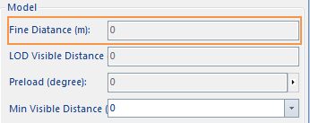 Fine Display Distance sets the distance at which Vector Model caches fine display. For example, the SceneCache generated by the CAD Model Dataest is a Vector Model cache. Note: Only works on Vector Model Cache Layer. The default fine display distance value of Application is 200 meters.