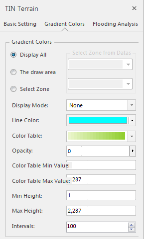 - Display area: Point cloud cache, Oblique Photography Model, and TIN Terrain When setting Gradient Colors, you can customize the area.
