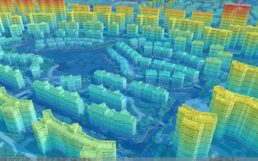 Gradient Colors is a common way of visual expression, which expresses and distinguishes different attributes of 3D Data through a certain order of color change or shade. The platform supports the setting of parameters such as color table, transparency, display area, and maximum/minimum visible values for Model Dataest, Oblique Photography Model, point cloud 3D Tiles data, and TIN Terrain, so as to realize the expression of Gradient Colors for models; In addition, the 3D grid body Data Settings color table is supported. The effect drawing of the TIN Terrain Gradient Colors is as follows: