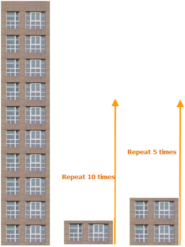 - Do not repeat texture maps. For example, for a 10-layer building map, it is better to repeat a 1-layer map 10 times, or a 2-layer map 5 times, as shown in the following figure: