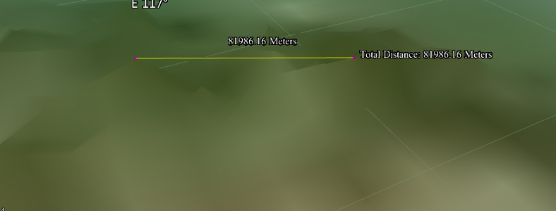 - If there is no Terrain Data in the measured area, the measured distance is the spherical distance of the smooth sphere, that is, the spherical distance of the smooth earth without considering the topographic relief of the earth's surface.