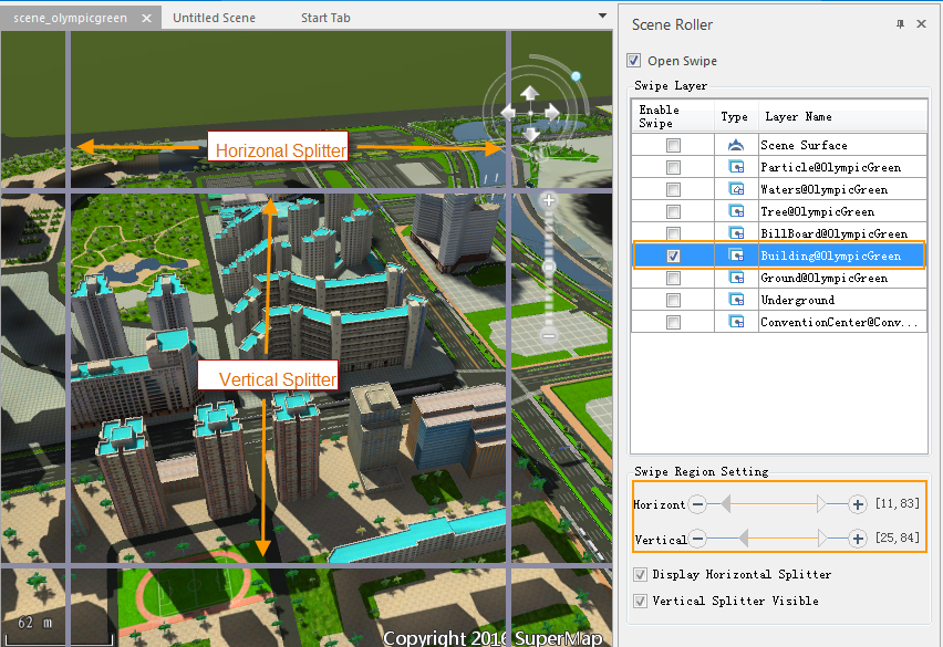 Swipe Layer: Lists the All Layers loaded in the current scene. Check the box to indicate the roller shutter effect for Layer Settings.