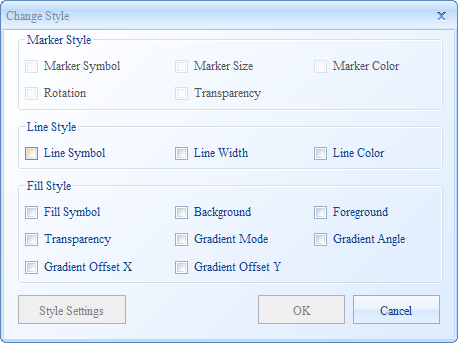 - Select multiple thematic values in the thematic list (the Ctrl or Shift key can be used together), and click the Marker Style button in the Toolbar to pop up the Change Style "dialog box, as shown in the following figure: