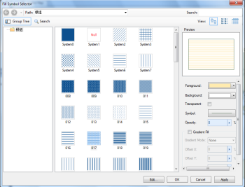 In the Symbol Style Settings area, when the Gradient Fill "checkbox is checked and Gradient Mode is not No Gradient, the Fill Style of the fill area is Gradient Fill. Gradient Fill is used as a Fill Style by means of color gradient. In this case, when any Fill symbol is selected from the Fill symbol list, it cannot be used as a Fill Style, that is, the Fill Style of the Fill symbol is invalid.