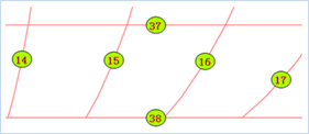 The Label Alongline function provides five directions of Label Alongline, namely, along the line, from top to bottom, from left to right, from top to bottom, from right to left, from bottom to top, from left to right, from bottom to top, and from right to left. When labeling with a direction along a line, the label labels the direction along the line from the start to the end. For the remaining four dimension direction options, each option includes the setting of two parts: the vertical direction (from top to bottom or from bottom to top) and the horizontal direction (from left to right or from right to left). These two parts do not work at the same time. Which part works depends on the direction of the line. The determination method of the line trend is: if it is a straight line, the starting point and the end point of the connecting line, if the included angle between the line and the horizontal direction is less than 60 degrees, the line trend is considered to be horizontal, otherwise it is vertical; for the arc line, the included angle between the tangent line of the arc line at the anchor point and the horizontal direction is considered. For the horizontal line, it is marked according to the setting of the horizontal part in the option (from left to right or from right to left), and the setting of the vertical part (from top to bottom or from bottom to top) is not considered; On the contrary, the vertical line is marked according to the setting of the vertical part in the option (from top to bottom or from bottom to top), and the setting of the horizontal part (from left to right or from right to left) is not considered. For example, if the Label Alongline direction in fig. 12 is from top to bottom and from left to right, the labels 14 and 15 are labeled from top to bottom, and the labels 16 and 17 are labeled from left to right.