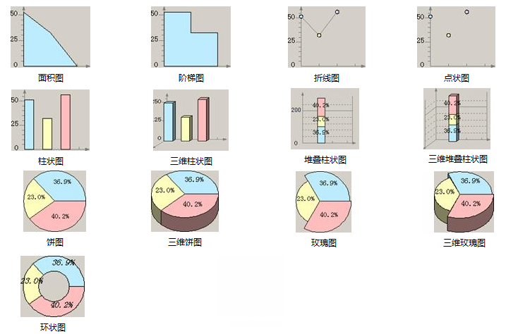 Statistical Thematic Map and statistical chart are two different concepts. In the Statistical Thematic Map, each area will have a statistical chart representing each thematic value of the area, and the statistical chart has various forms of expression. Currently, the provided Diagrams include: Area Chart, Ladder Chart, Broken Line Chart, Dot Chart, Column Chart, 3D Bar Chart, and Pie Chart. 3D Pie Chart, Rose Chart, 3D Rose Chart, Ring Chart, Stacked Bar and 3D Stacked Bar Chart (see Figure 17 for various statistical charts). By way of example, fig. 16 is a Statistical Thematic Map.