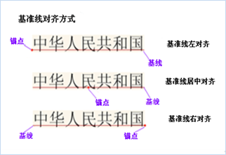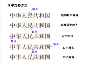 , the position of a tag is controlled by its anchor point. The position relationship between the label and the anchor point is set in the style of the label or text. Currently, 12 kinds of position relationships between the label and the anchor point, or called Alignment, are provided to control the placement of the label around the anchor point. They are: Corner Alignment: upper-left corner alignment, lower-left corner alignment, upper-right corner alignment, lower-right corner alignment; Center Alignment: Top Center Alignment, Center Alignment, Left Center Alignment, Right Center Alignment, Bottom Center Alignment; Baseline Alignment: Baseline Left Alignment, Baseline Center Alignment, Baseline Right Alignment.
