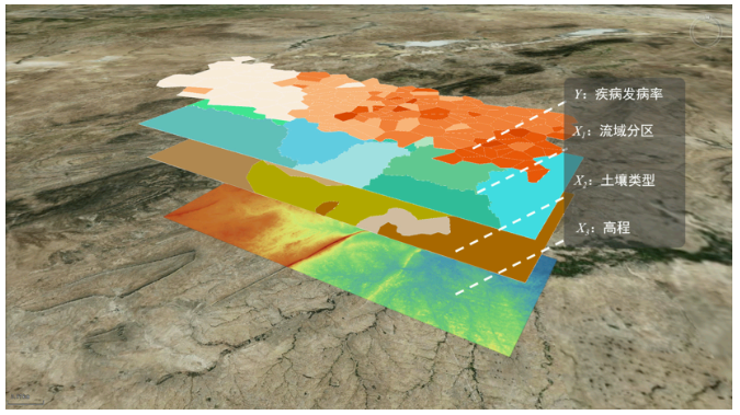 下面利用地理探测器功能对某县神经管畸形出生缺陷(NTDs)发生率进行分析,环境因子变量包括:土壤类型、高程、水文流域。下图为环境因子分析的数据示意: