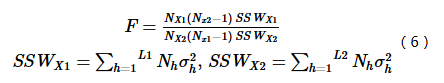 用于比较两因子X1和X2对属性Y的空间分布的影响是否有显著的差异,以F统计量来衡量: