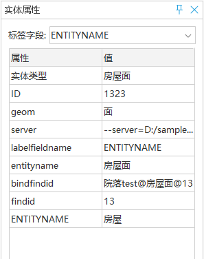勾选实体属性复选框,将弹出实体属性面板,在面板中显示实体的属性信息。