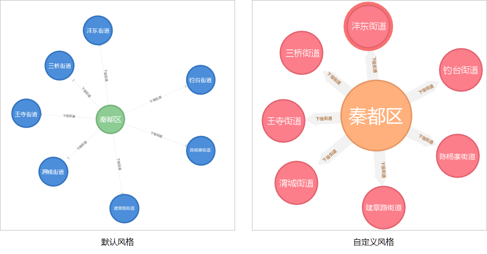 下图中左边为默认图谱风格,右边为自定义图谱风格。