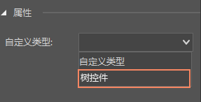 - 注册自定义树控件类型至下拉选项中,以供选择。注册后属性面板自定义类型下拉选项中,可选择树控件类型,如下图所示: