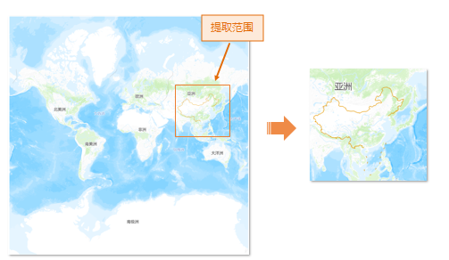 可应用于大范围瓦片数据的提取,可指定提取区域及瓦片比例尺,免去用户常规裁剪、提取等繁琐的操作过程。例如,当某省需要将高清影像数据分发给各区市县,只需要将区市县的行政边界作为提取范围,即可将瓦片提取至对应区域。同时还可指定提取比例尺,当精度过高的数据,在提取时需要限制数据精度级别,则可通过选择比例尺,无需重复切图,即可便捷快速的分发数据。