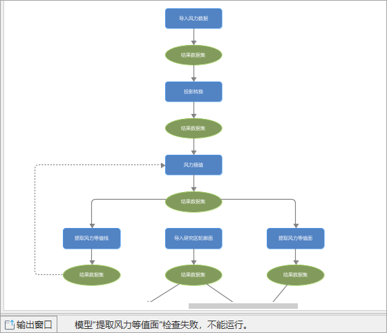 - 检查:创建好模型之后,可通过检查功能,检查模型中各个工具的必填参数是否被填写。若未填写,则无法执行模型并会在输出窗口提示错误信息。注意:若未检查处理自动化模型,在运行时会自动对模型进行检查。