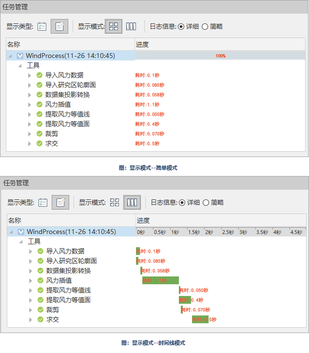 - 日志信息:记录了每条执行记录在程序中的运行情况,提供详细和简单两种方式。