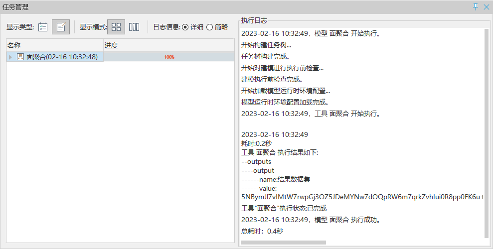 当选中任务管理中执行的某一条记录后,记录的信息将在右侧执行日志中显示。