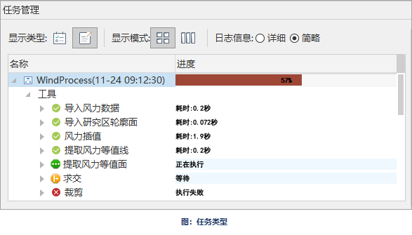 - 正在执行:显示了当前正在执行的功能,及执行进度,同时,处理自动化窗口中会在该功能图形中用红色标识进度,如下图中的 “提取风力等值面”;