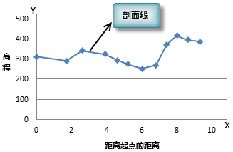 下图展示了二维坐标系下的剖面线示意图,通过剖面线可以直观的了解沿给定线路上地形的高程起伏情况。