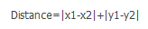 曼哈顿距离是与欧式距离不同的一种丈量方法,两点之间的距离不再是直线距离,而是投影到坐标轴的长度之和。就是在欧式距离固定直角坐标系上,两点所形成的线段对轴产生的投影的距离总和,计算公式为: