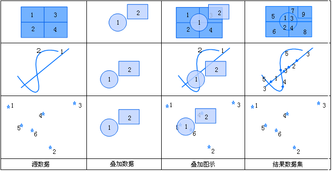 SuperMap 目前提供了7种叠加分析的算子。下面分别进行介绍: