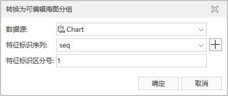 - 在工作空间管理器中,单击不可编辑分组结点右键,选择“生成可编辑海图分组”,或在海图选项卡 -> 海图数据管理组 -> 分组转换下拉按钮,选择生成可编辑海图分组...,弹出转换为可编辑海图分组对话框,如下图所示: