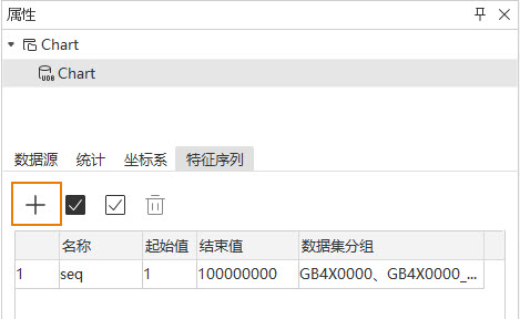 - 在特征序列面板中,单击工具条中的添加按钮,在弹出的创建特征标识序列对话框中,设置特征标识序列的名称、起始值和结束值。