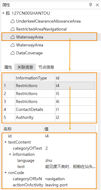 - 关联信息:定义了不同要素类型之间的关系,帮助描述电子海图中的复杂地理实体及其相互作用。