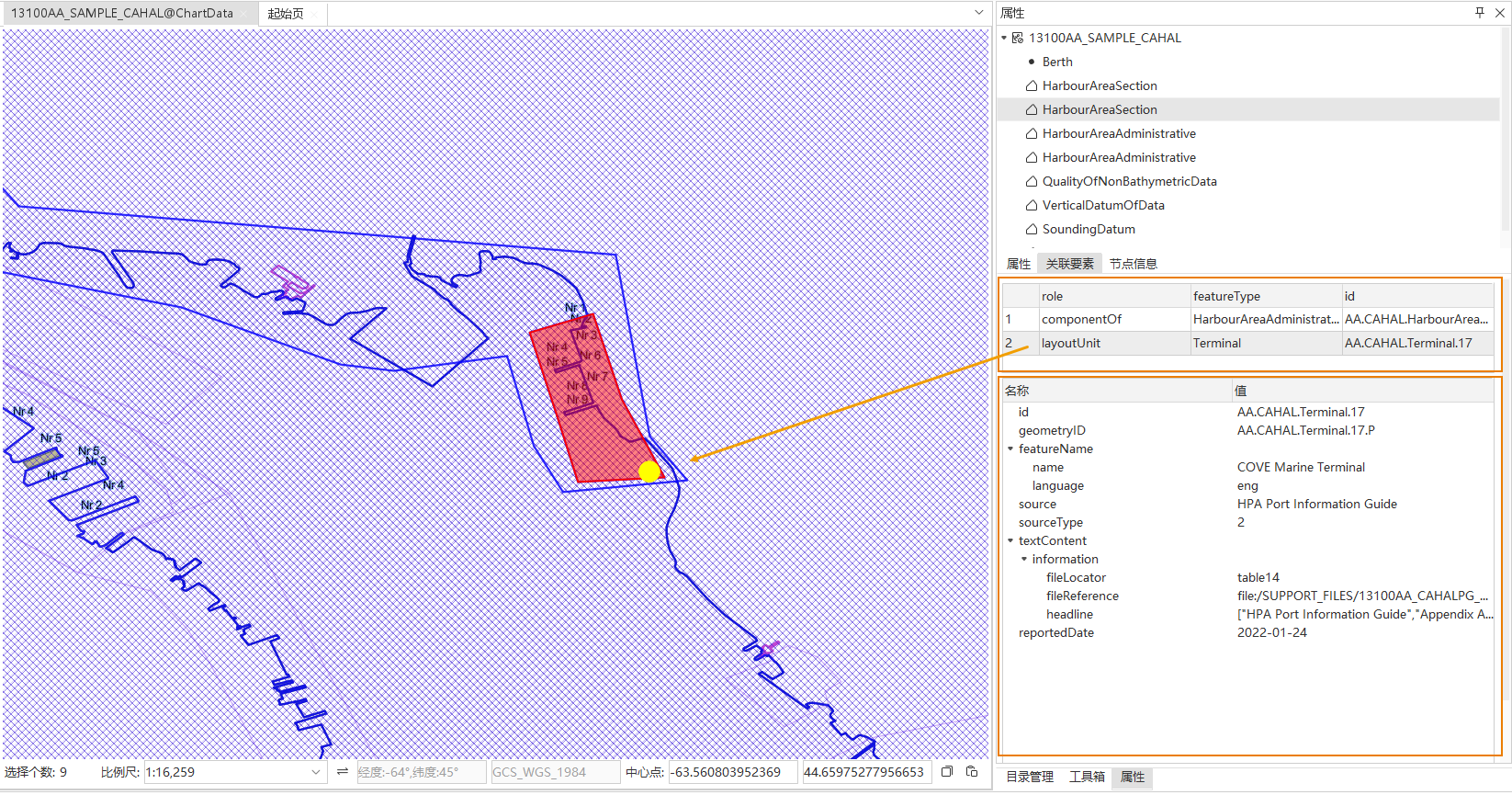 查看要素对象属性在实际应用中是至关重要的。它不仅是船舶导航中确保安全性、精确性的基础,更是确保海图生产过程准确性和符号化正确的关键步骤,例如: