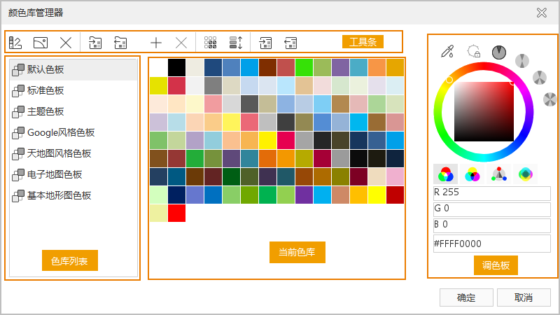 颜色库管理器提供了对当前颜色库中的颜色进行高级管理的功能,可以更为灵活、专业地管理颜色集合。