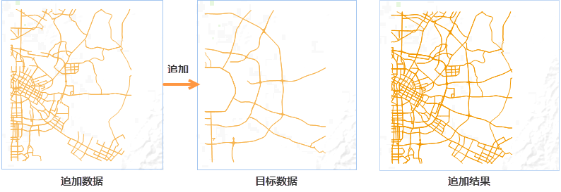 - 追加和被追加的数据集的属性表结构必须完成一致,即属性字段个数、属性字段名称和属性字段的类型必须保持完全一致。
