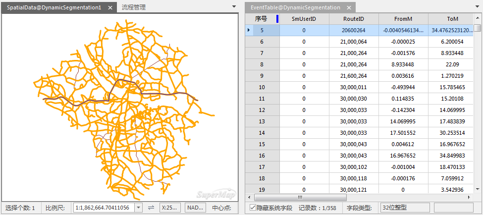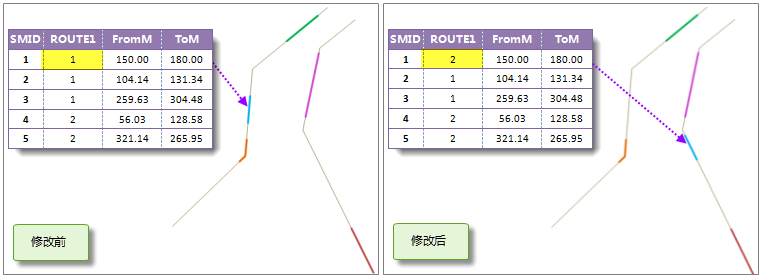 - 修改空间数据的路由 ID,则事件表中对应记录的路由 ID 值也会改变;同时,空间数据的几何信息也会根据修改情况发生相应的变化。