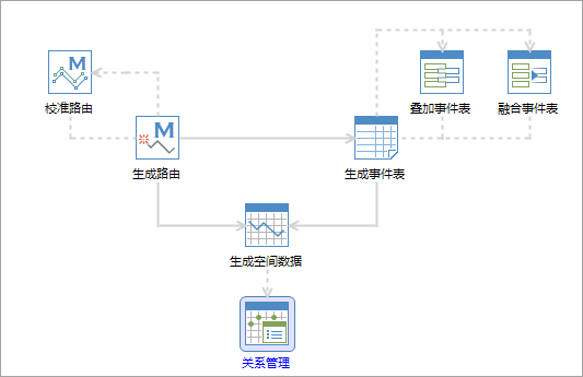 如上图所示,流程图中明确地展示了动态分段过程中的主要步骤以及各个步骤之间的关系。主要的功能按钮通过连接符进行连接。带箭头的实线表示实线连接的两个功能之间按照箭头所指的方向默认存在参数传递,带箭头的虚线表示虚线两端连接的两个功能之间不会发生参数传递。在使用的过程中,单击主要步骤的功能按钮,设置好参数后即可执行。有关流程管理窗口的介绍内容,请参见流程管理窗口介绍。
