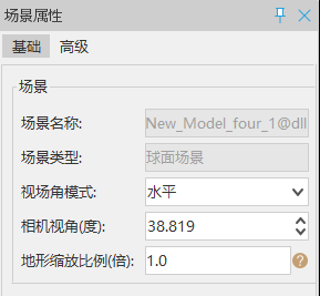 “场景属性”面板上的“相机视角”,可用于调整场景的相机视角范围。