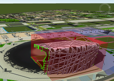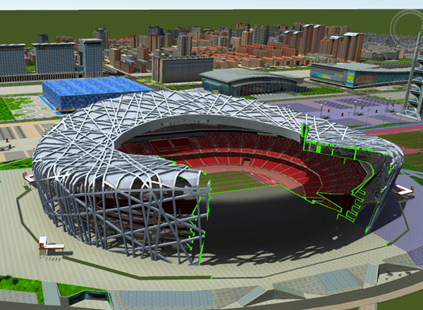 使用Box裁剪,可以在不进入模型内部的情况下,直接查看模型内部的情况。例如,对鸟巢模型设定局部Box裁剪区域,得到的效果如下图所示。