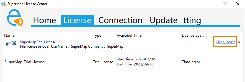 Figure: Clear License - Method 2: Delete contents in C:/Program Files/Common Files/SuperMap/License directory.