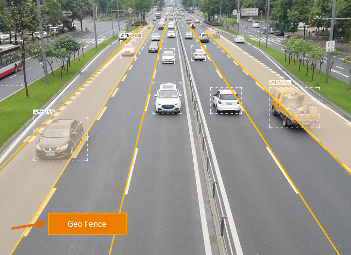 Geo-fencing analysis uses specified area boundaries in video as virtual fences, triggering corresponding alerts or notifications when targets enter or exit these areas. This technology is widely applied in traffic monitoring, security, and public safety fields, such as detecting illegal vehicle entry into bicycle lanes/bus lanes, and regulating shared bicycle parking.