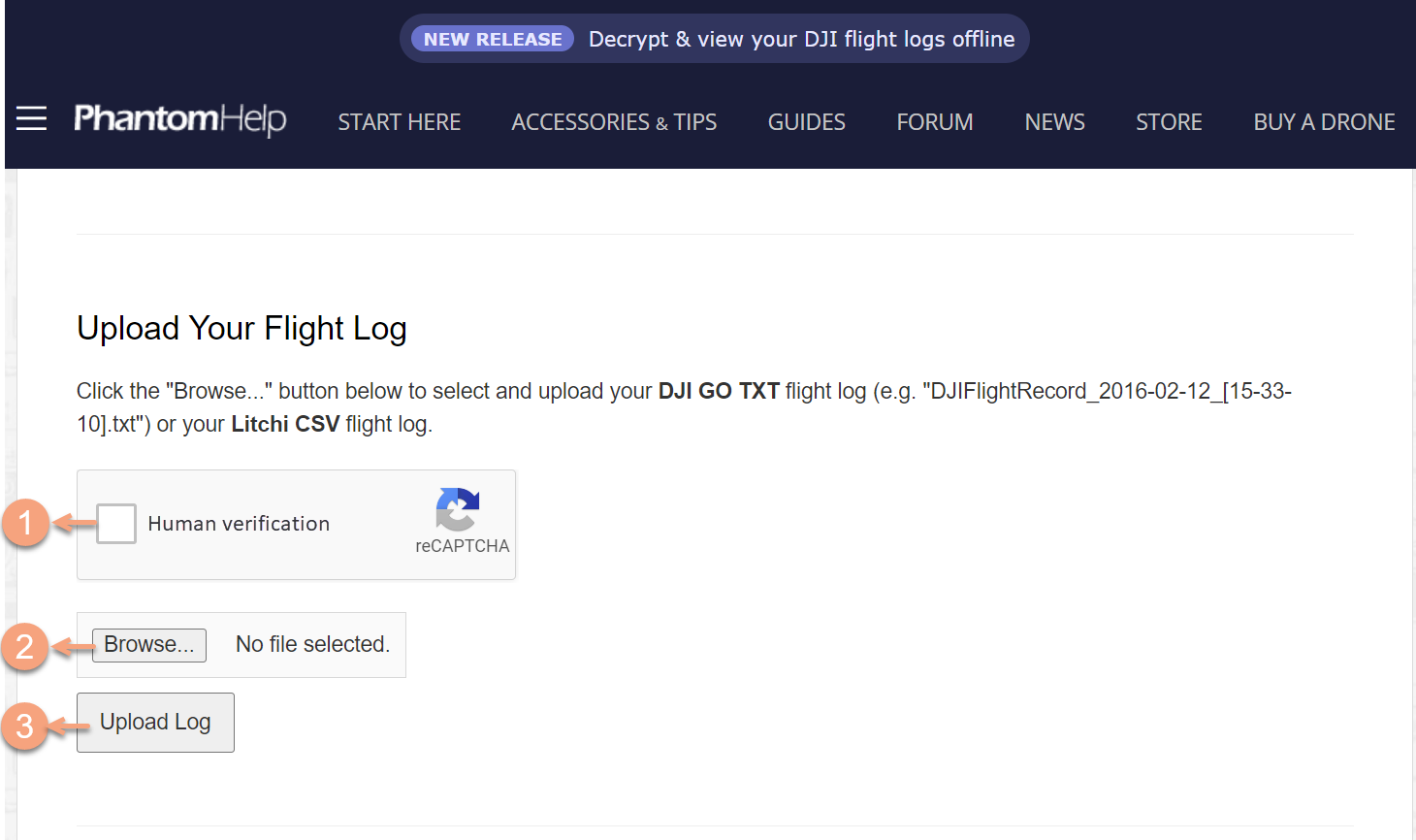 - Click "Upload Log" button;