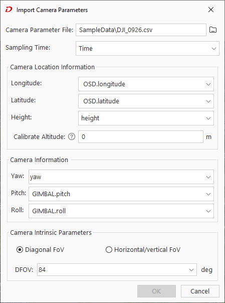 - Camera Parameter File: Select extracted CSV file