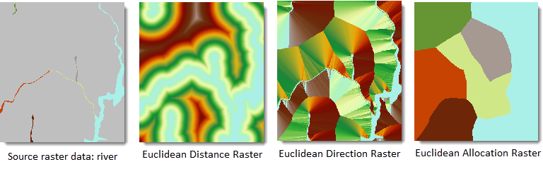 The Generate Line Distance Raster function produces corresponding line distance raster, straight direction raster, and straight allocation raster based on the source dataset.